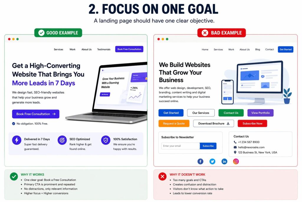 A high-converting landing page should have one clear objective: