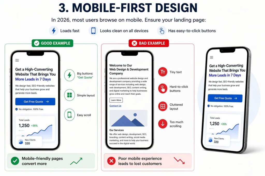In 2026, most users browse on mobile. Ensure your landing page:
